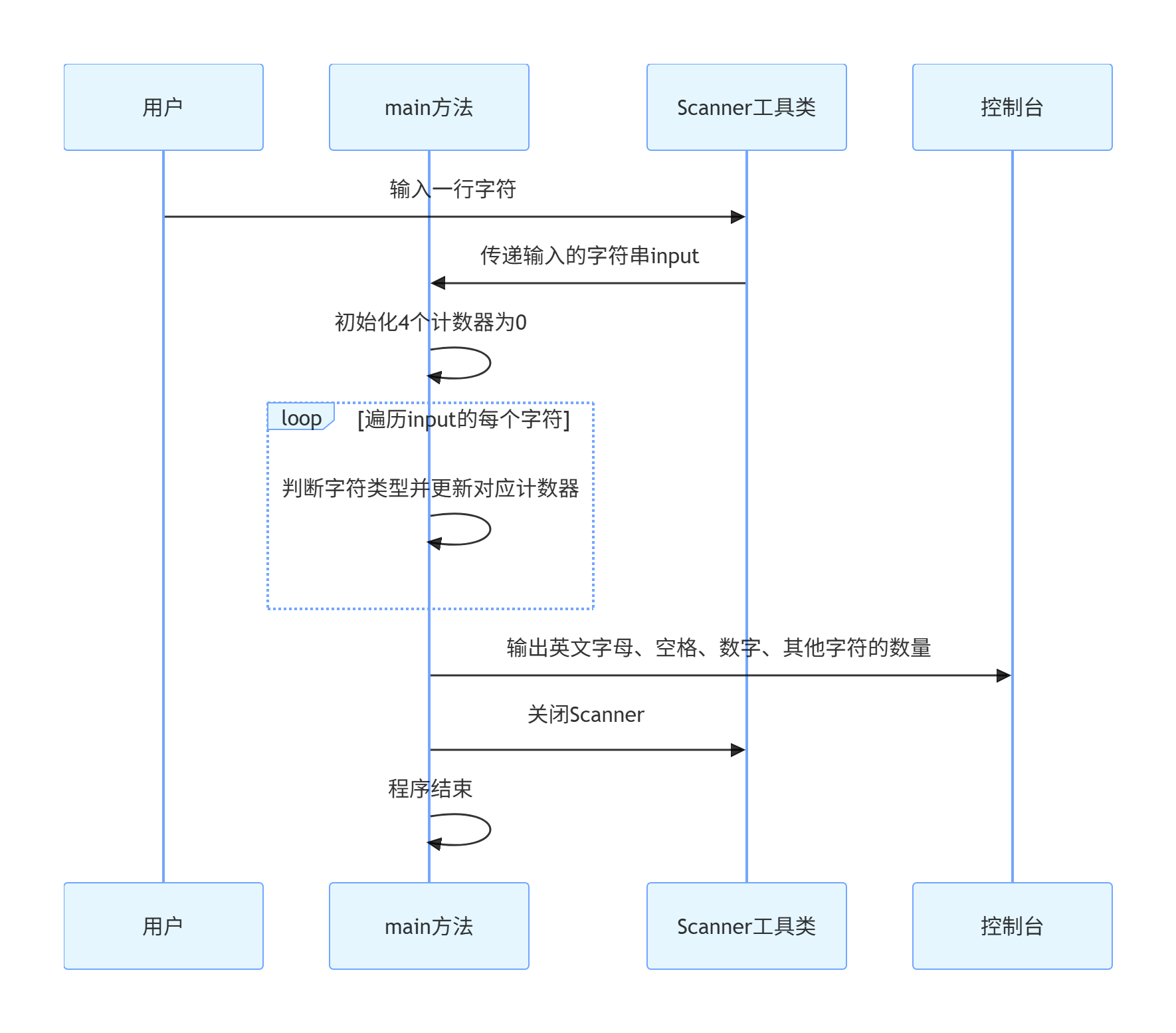 String input = scanner.nextLine(); - 初始化计数器: