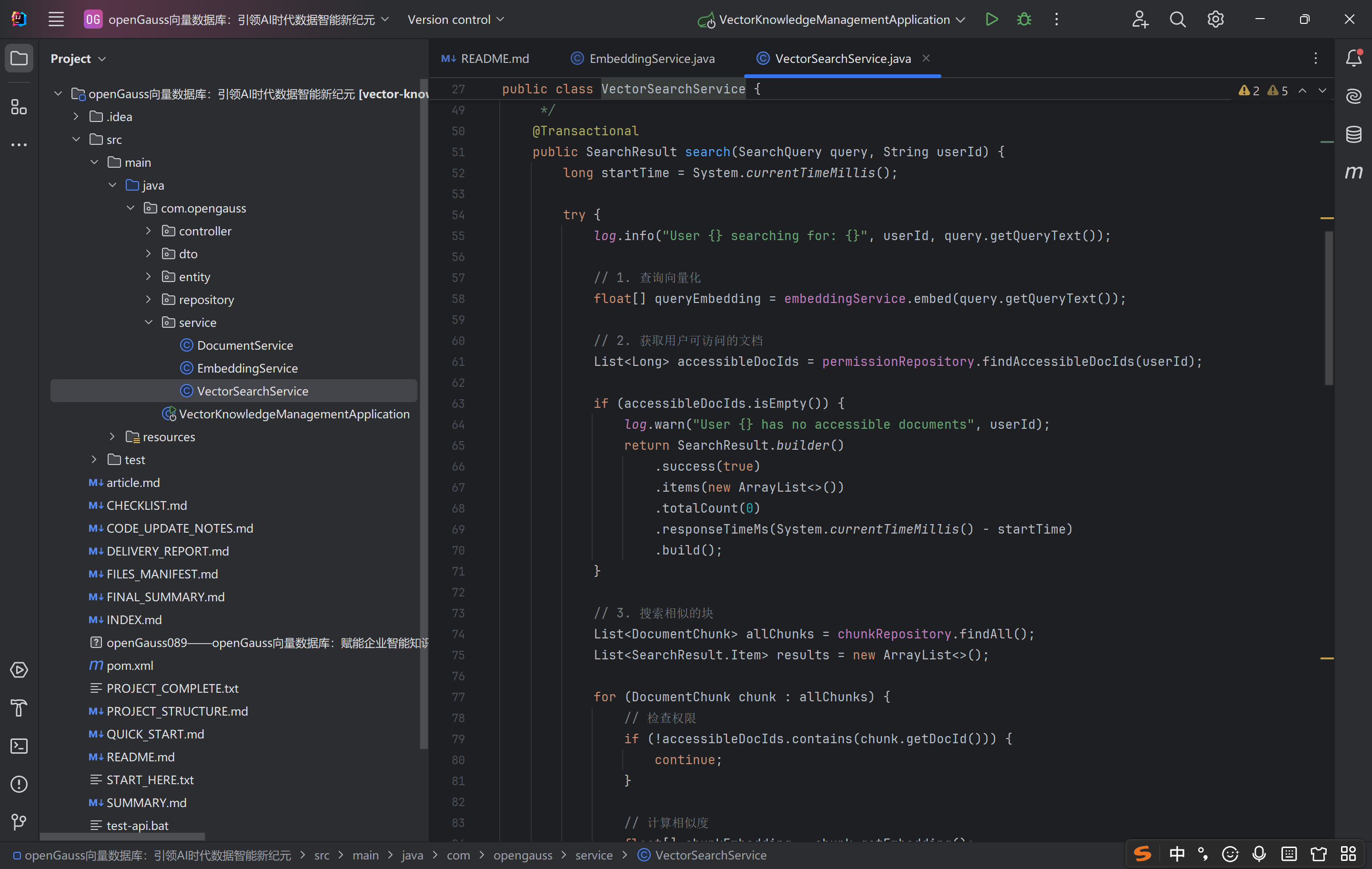 │ │ │ └── VectorSearchService.java