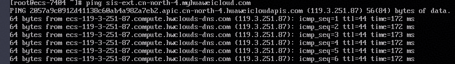 3.通过ping同局点SIS服务域名,验证是否可以公网访问(如果机器在北京四,就ping北京四的域名)