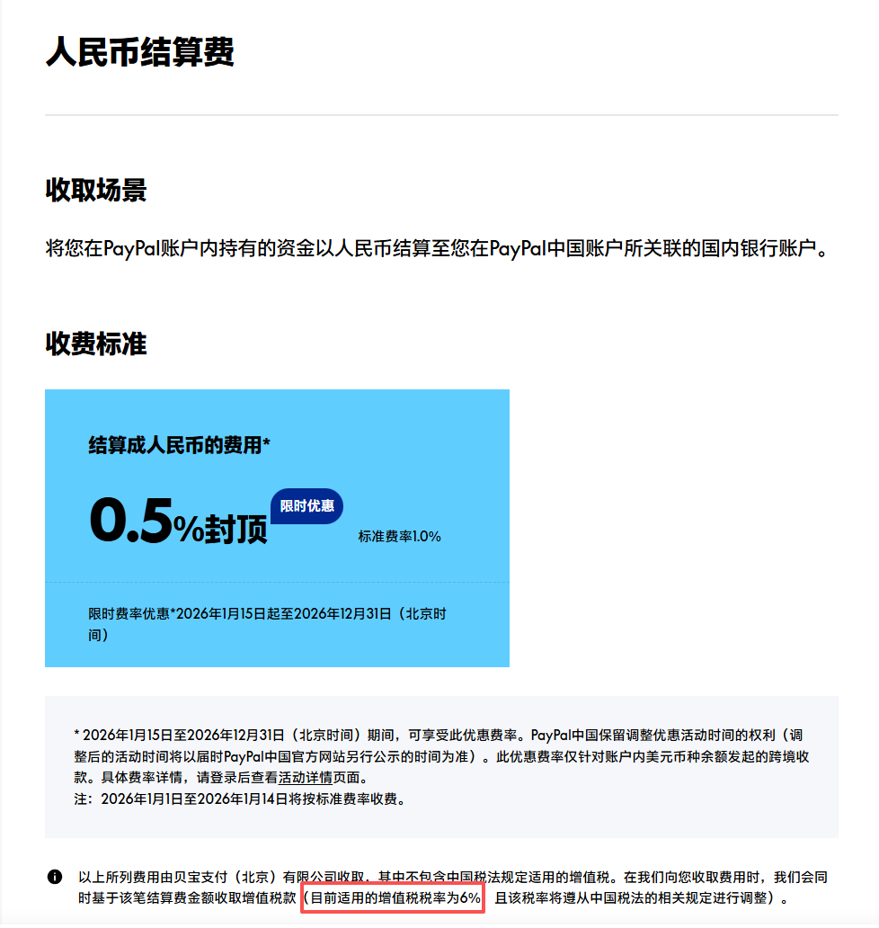 - 增值税:6%(由PayPal代缴)