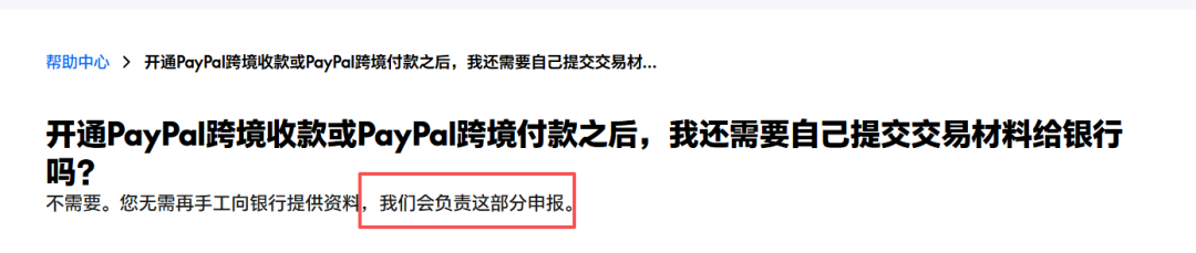 - 无需个人逐笔申报,由PayPal统一向银行申报
