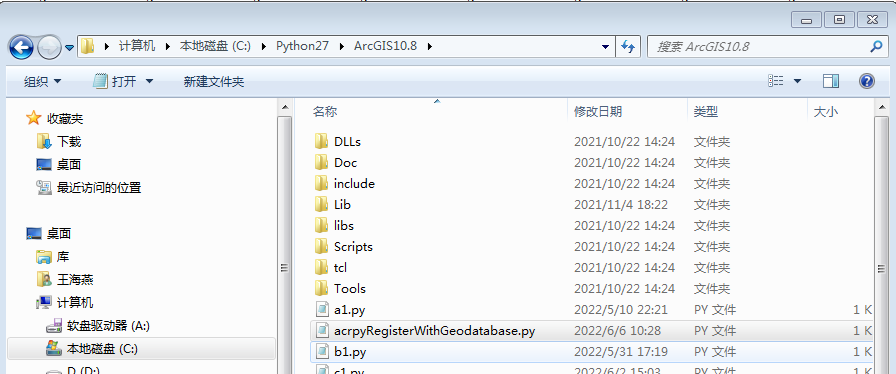 result/2021-12-02_15_15_15/SDE/AcrpyRegisterScript/的目录下,把acrpyRegisterWithGeodatabase.py文件拷贝到 ArcGIS 所在的机器上,放到形如c:/python27/ArcGIS10.0的目录下: