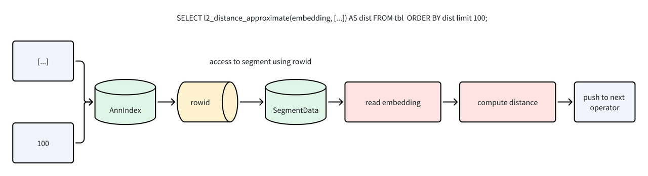 例如 SELECT l2_distance_approximate(embedding, [...]) AS dist FROM tbl ORDER BY dist LIMIT 100;,执行过程将不再触发数据文件 IO。