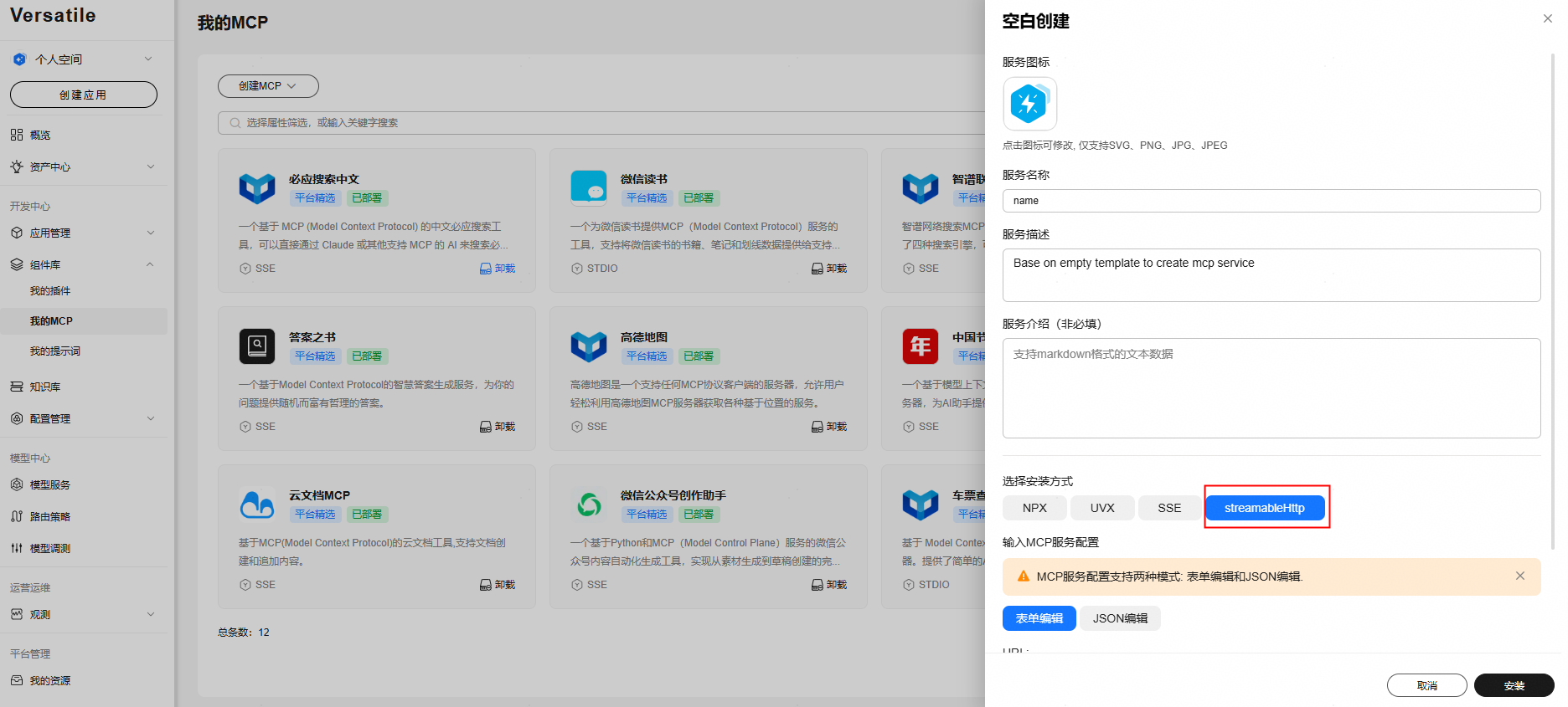 · 基于空白模板创建MCP,安装方式支持streamableHttp