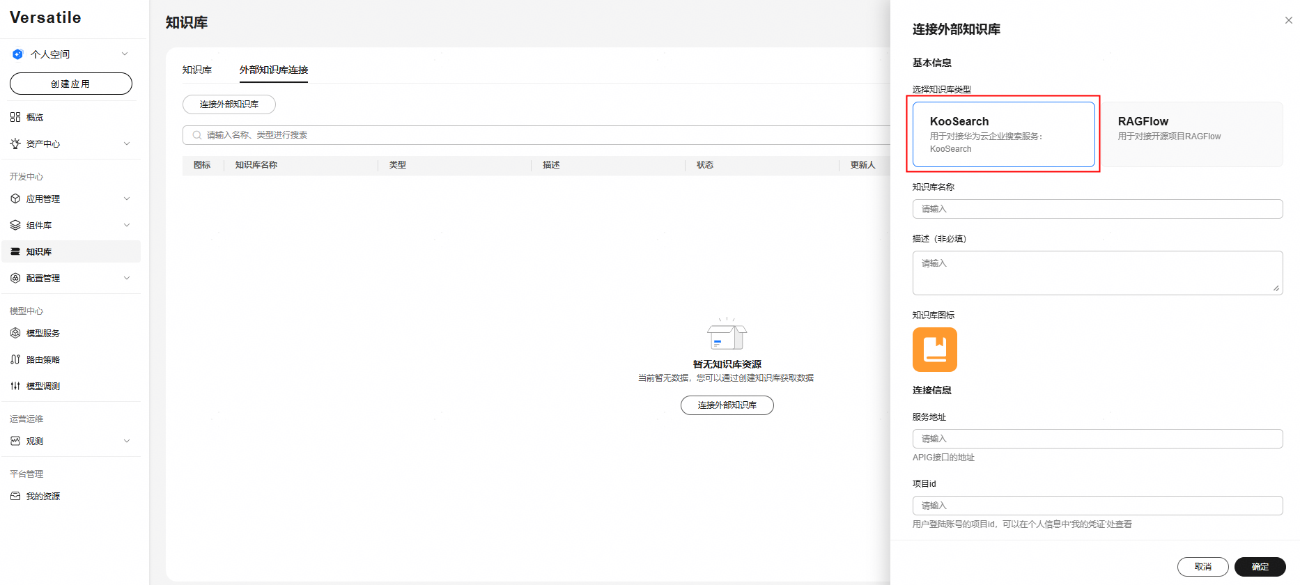 · 外部知识库连接支持对接华为云企业搜索服务KooSearch