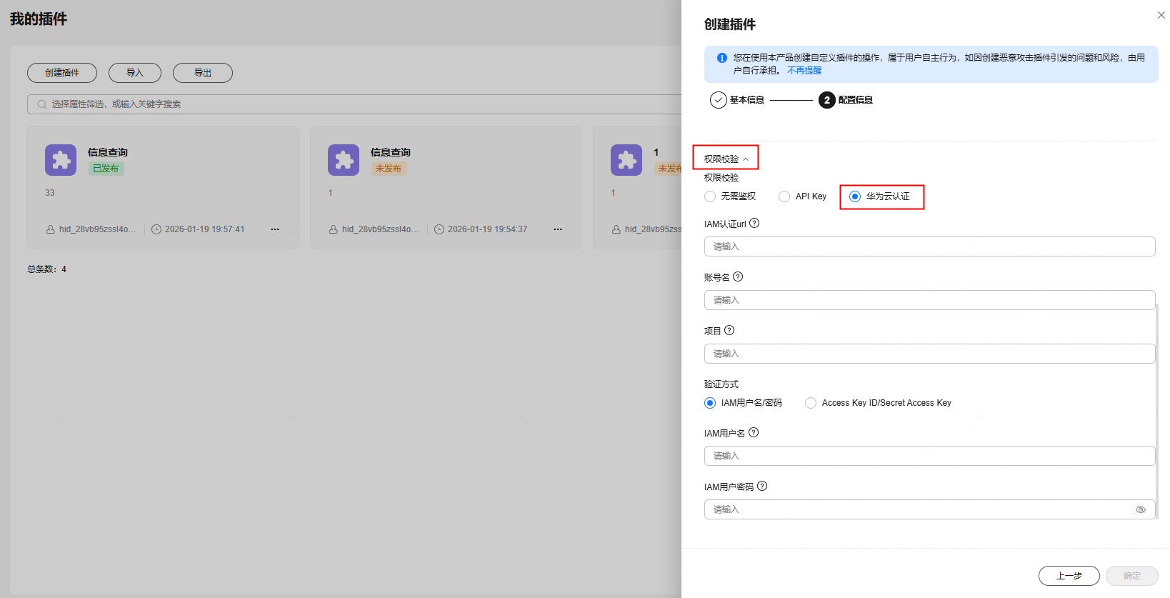 业务价值:丰富插件鉴权的方式,对接华为云IAM实现快速权限校验。