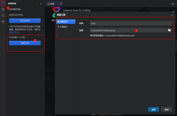 点击左上角文件按钮-新建工程-创建一个新的项目