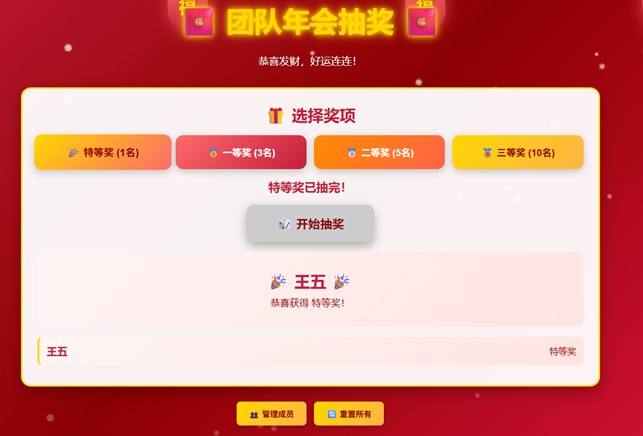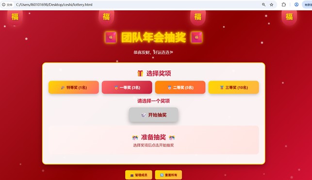 注:因为本抽奖应用是Agent自动生成的,每次提问所设计生成的代码及最后的运行结果均存在出入,开发者可根据自己的需求,调教模型生成自己想要的结果。