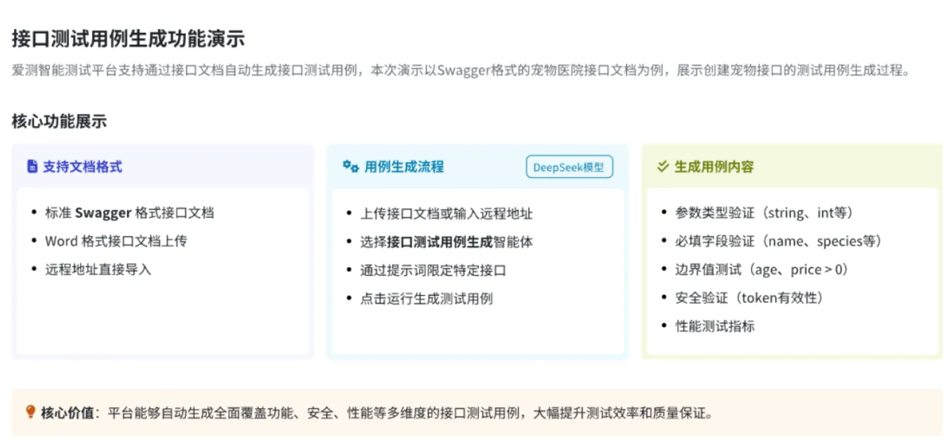 爱测智能测试平台的核心能力之一,是需求 / 接口文档的自动分析与测试用例生成。