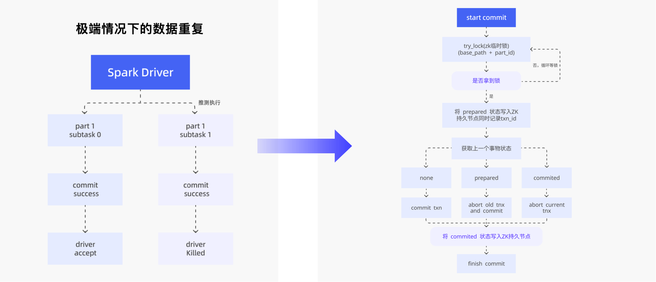 - Spark 推测执行时,两个 Task 同时写入同一份数据并均完成 Doris 两阶段提交,尽管 Driver 只认定一个 Task 成功,但数据已重复。