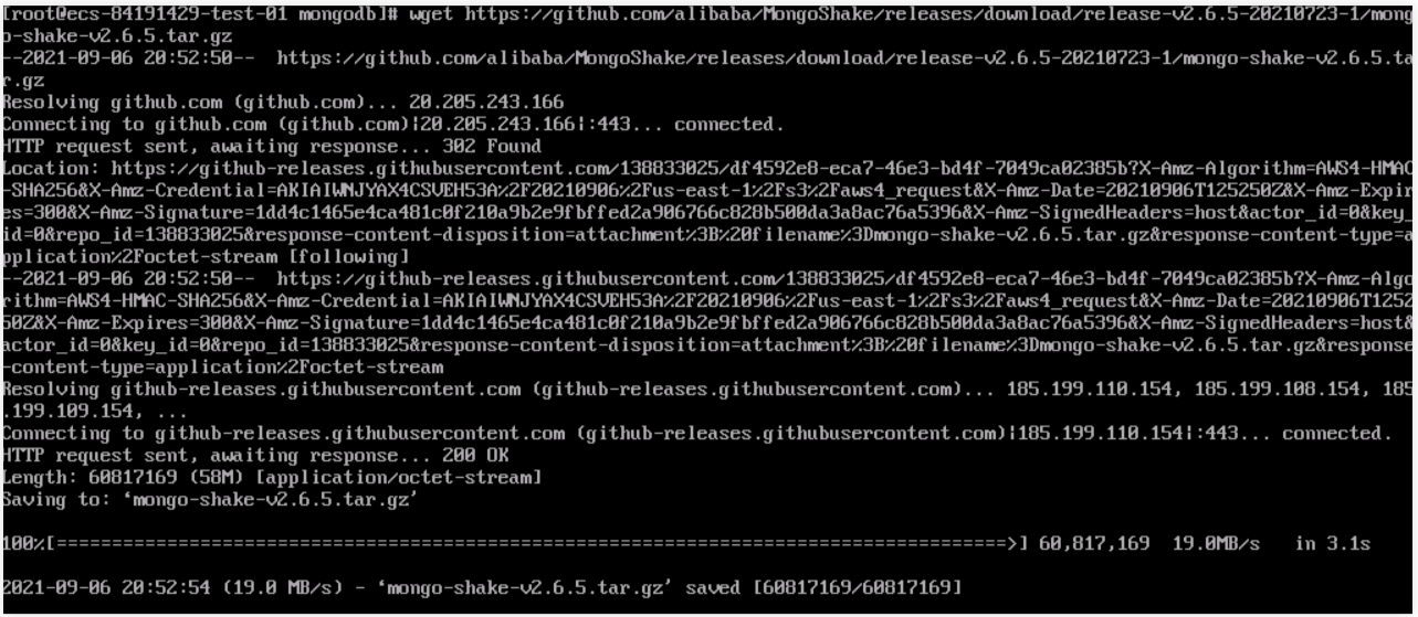 在以下链接下载 mongo-shake 工具:https://github.com/alibaba/MongoShake/releases/download/release-v2.6.5-20210723-1/mongo-shake-v2.6.5.tar.gz