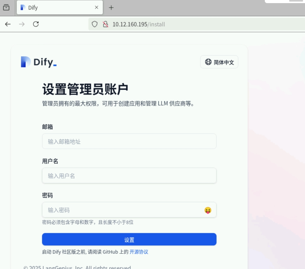 首次访问会出现上面的注册页面,填入信息即可。后续访问,查询到已注册,会自动跳转到登录页面