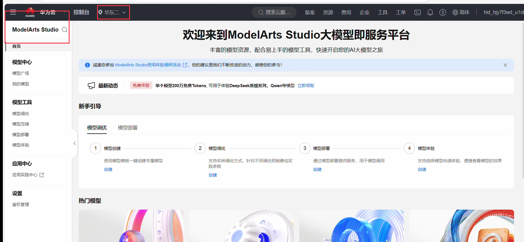 1、打开modelArts Studio控制台