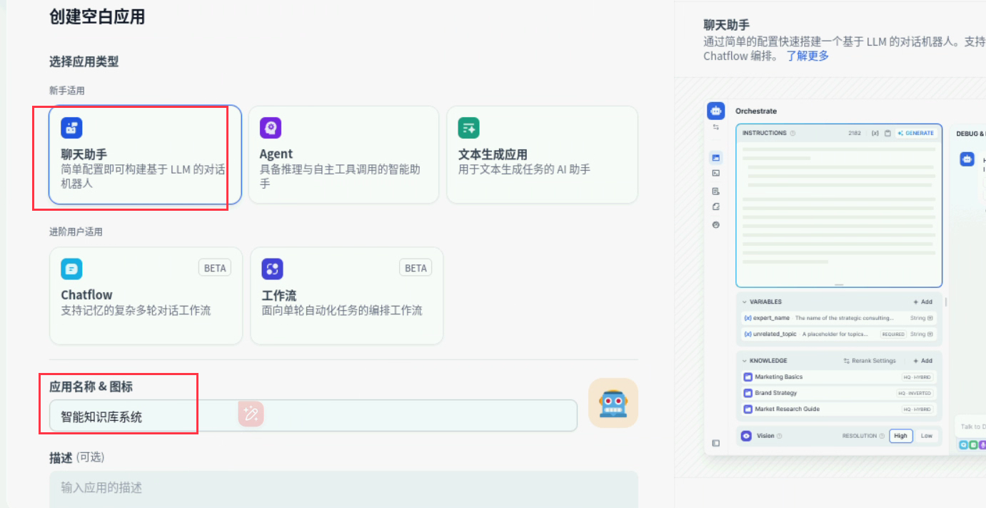 选择聊天助手,填写应用名称,点击创建