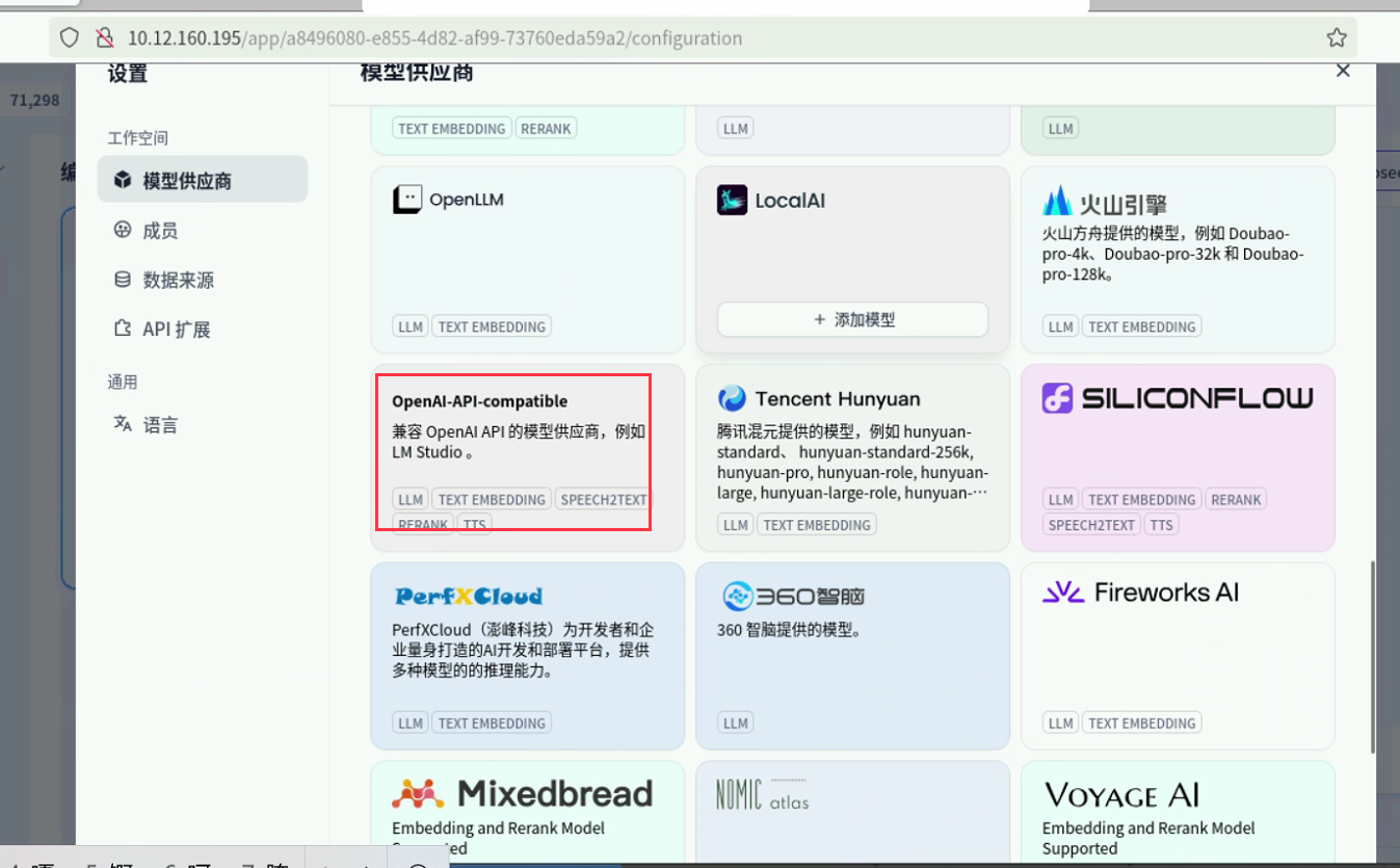 配置dify,模型供应商选择open-opi-compatible,填入获取api地址、模型名称、api-key,点击保存
