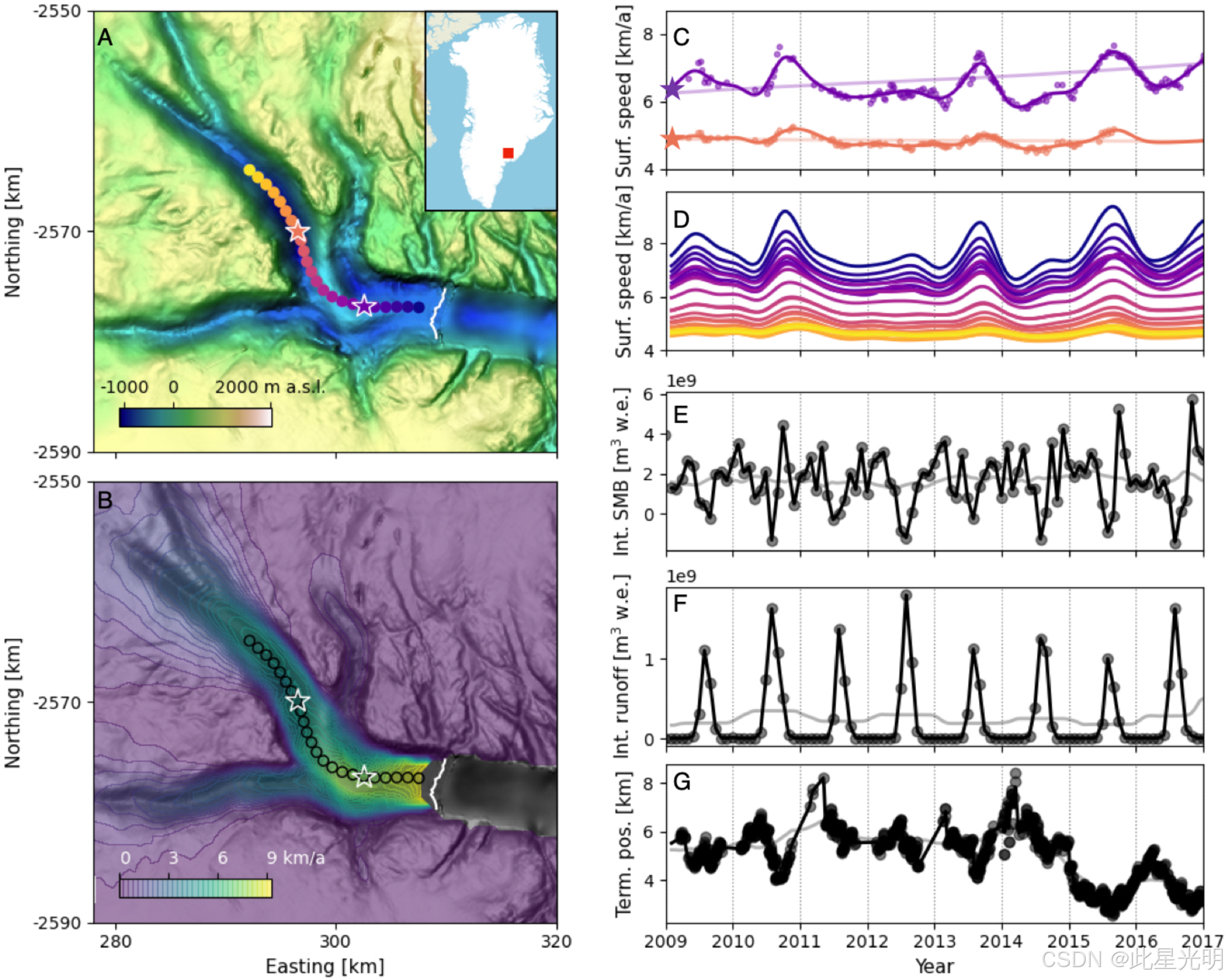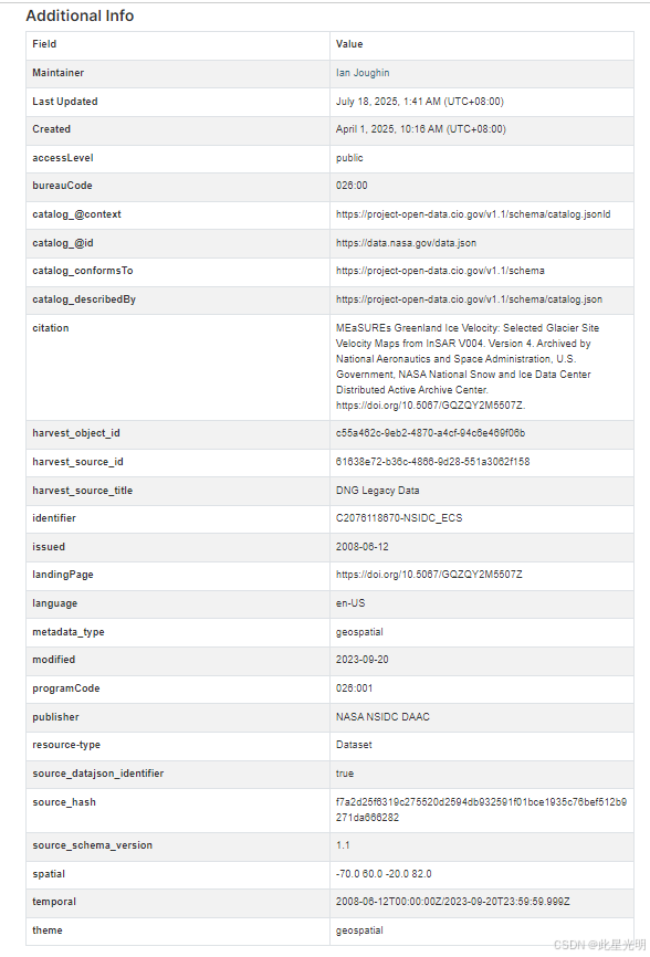 【摘要】 MEaSUREs Greenland Ice Velocity: Selected Glacier Site Velocity Maps from InSAR V004简介该数据集是美国国家航空航天局(NASA)“地球系统数据记录研究环境应用”(MEaSUREs)项目的一部分,提供了格陵兰岛主要冰川出口区域的速度估算值,这些估算值基于干涉合成孔径雷达(InSAR)数据得出。其中一些区域在 ...
