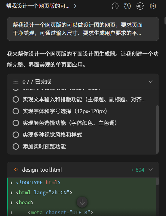 最后分享一个我的prompt技巧:尽量把需求说具体,比如“要有渐变效果”“右侧预览区要有阴影”“默认尺寸可以是1080x1080”。AI理解得越好,生成的代码越接近你想要的效果。