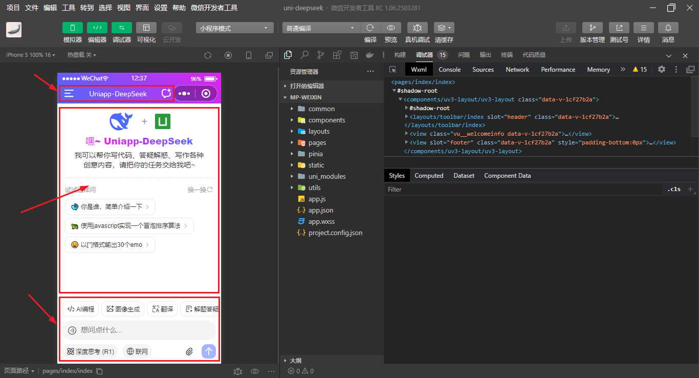 基于uniapp+vue3搭建项目模板,接入deepseek api大模型。