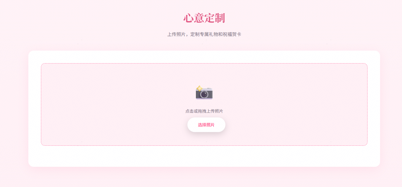 4、心意定制: 支持上传照片定制礼品(如照片书、定制首饰),并生成祝福贺卡模板。