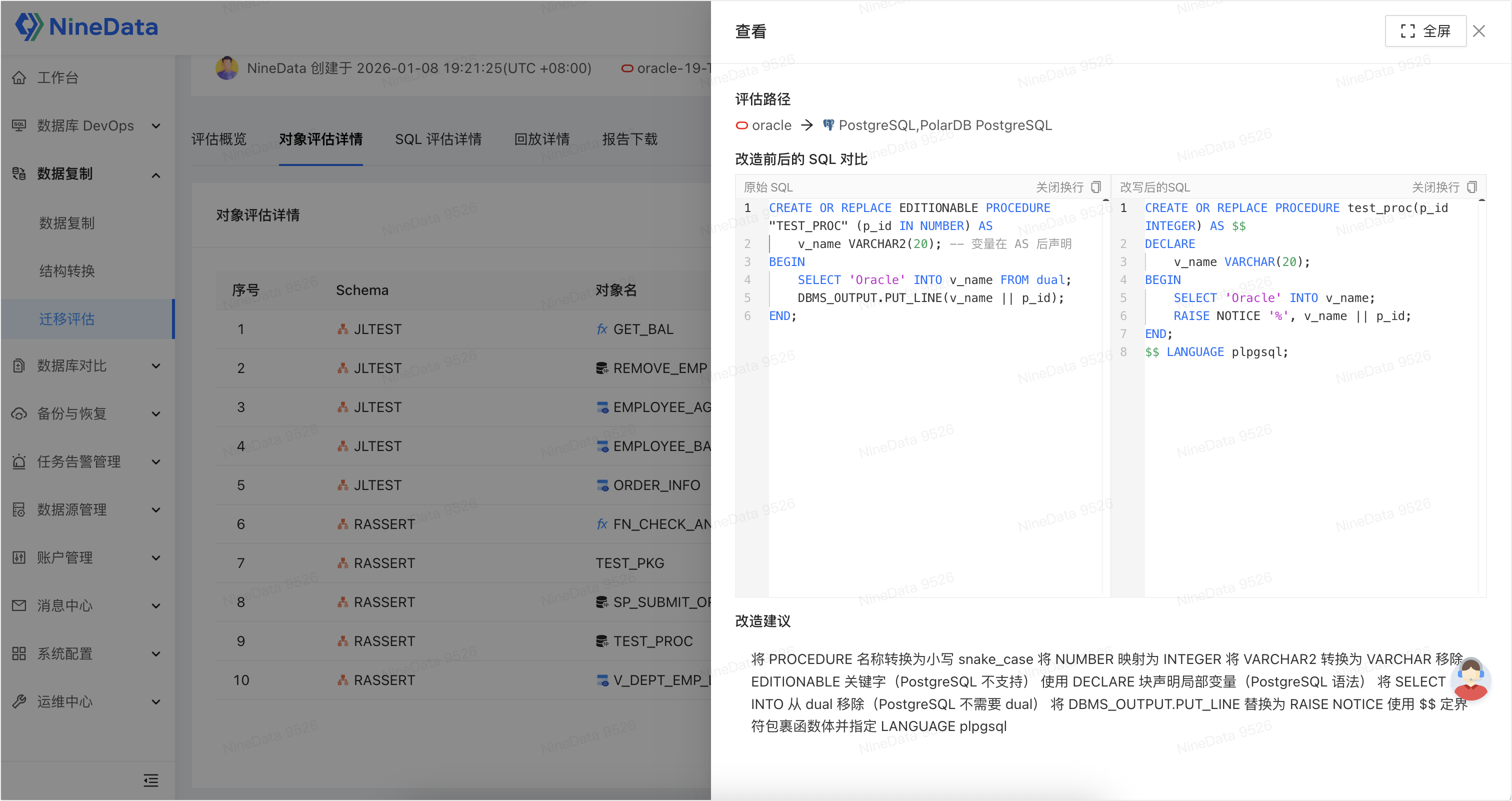 这是 NineData 迁移评估最具生产力的功能: