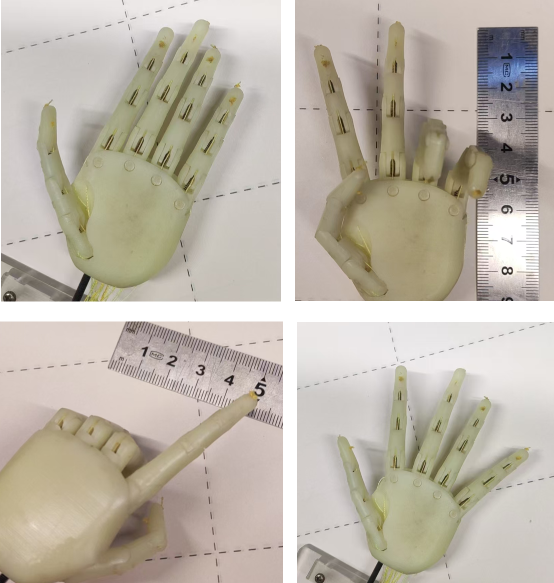 驱动原理:以钛丝相变实现 “收缩 - 恢复”,连续柔顺,可模拟肌肉蠕动 / 弯曲带动手关节弯曲和伸展。