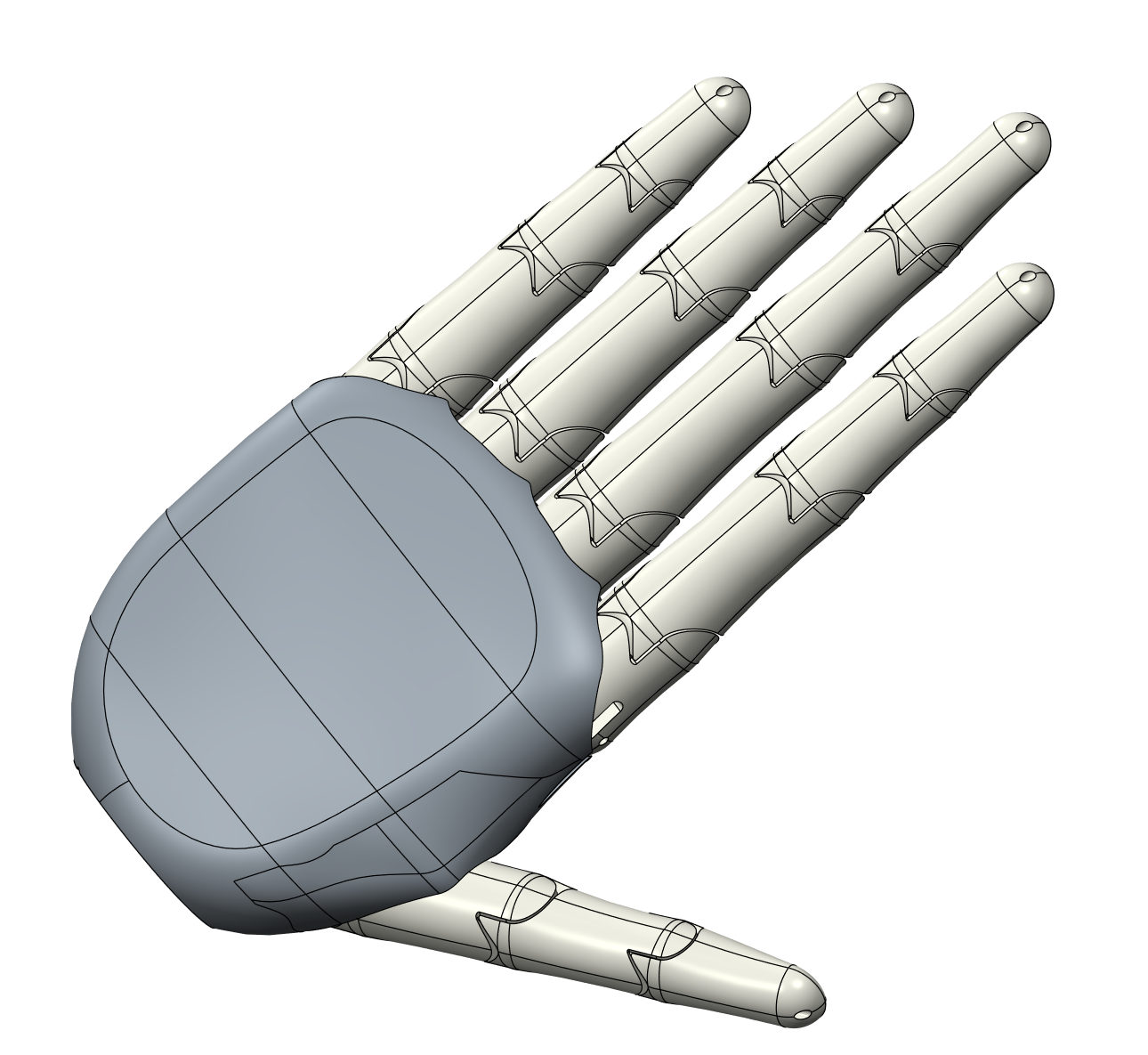 覆膜一副硅胶仿真手套,就可以实现功能、外观的仿生效果了。