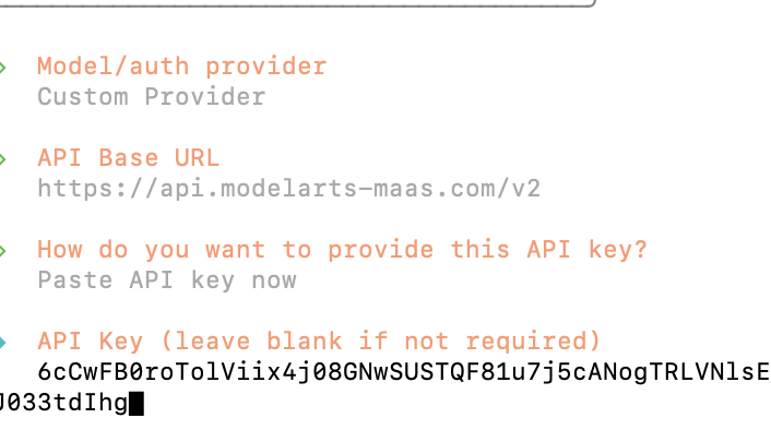 5、先配置模型model,选择自定义模型,填入你自己买的大模型服务参数的URL和KEY及model id,这一步非常关键,这是给龙虾加油的,没油跑不了。我是在这里买的,活动期间1元1千万tokens(https://developer.huaweicloud.cn/space/incentive/other-activity/deepSeek-r1-v3/detail/A000044)。