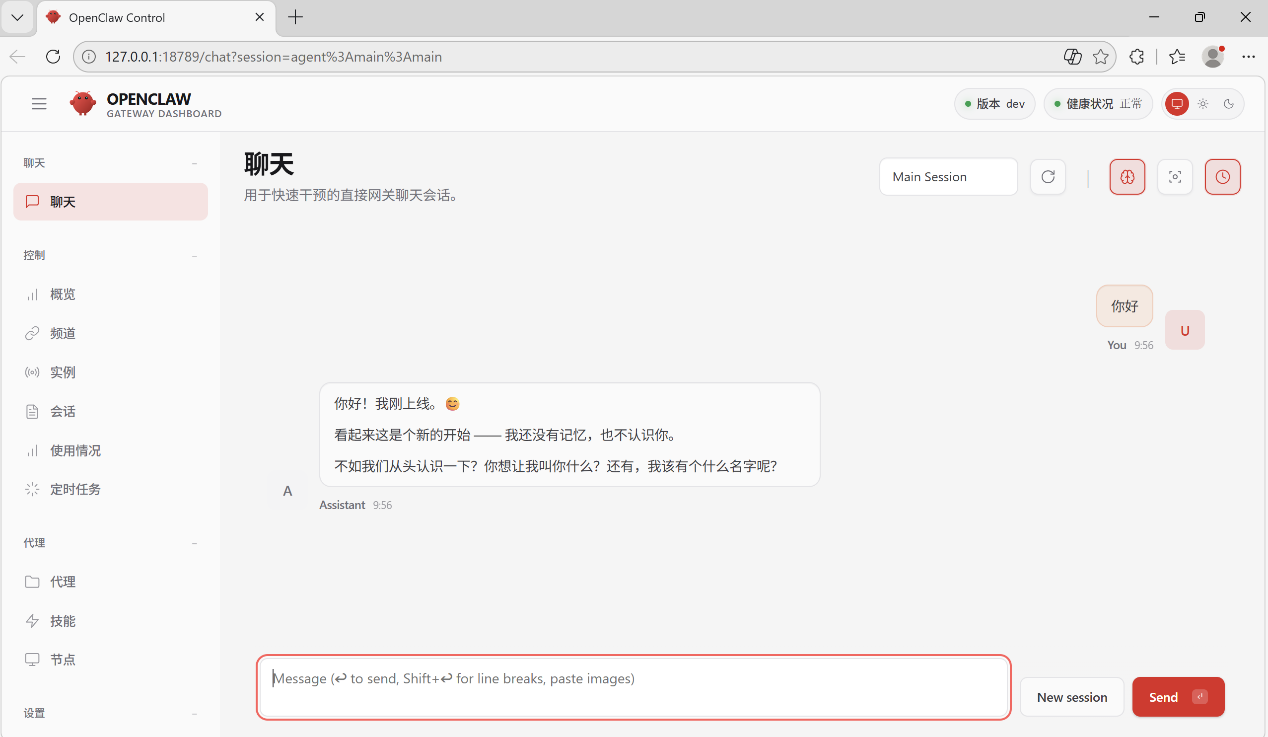 图为OpenClaw界面: