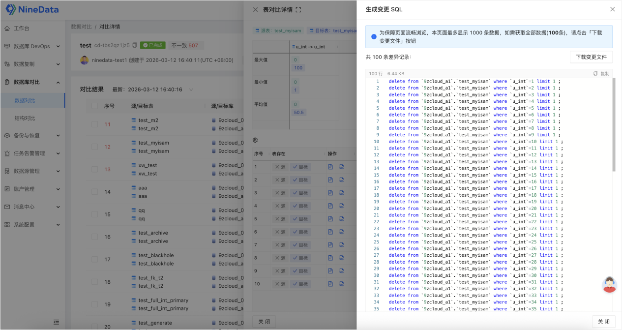 通过 NineData 平台,即可按照上述教程完成 MySQL 数据对比与修复,实现数据一致性校验的自动化与高效化,解锁 MySQL 数据对比的高效方式,支持