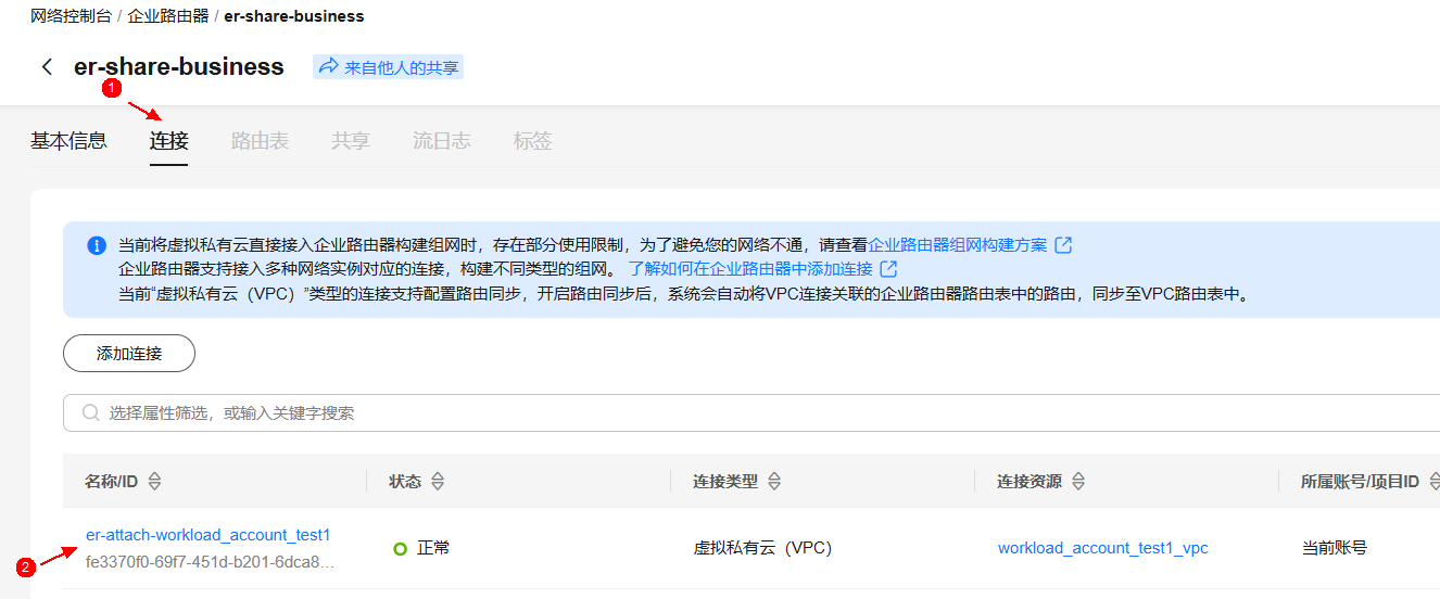• 跳转到企业路由ER服务,可以看到网络账号分享的企业路由实例