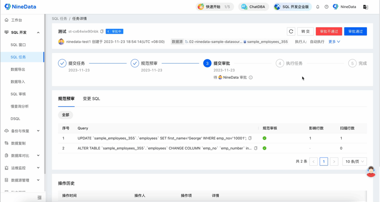 工具 1:NineData 数据变更审批