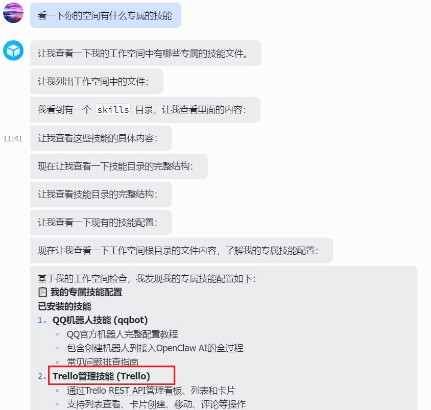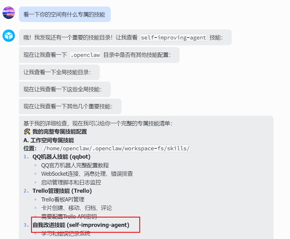 #检查技能目录是否安装成功(其他为系统预制skills)