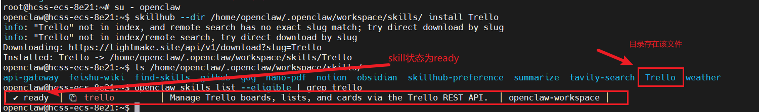 openclaw@hcss-ecs-d448:~/.openclaw$ skillhub --dir /home/openclaw/.openclaw/workspace/skills/ install Trello