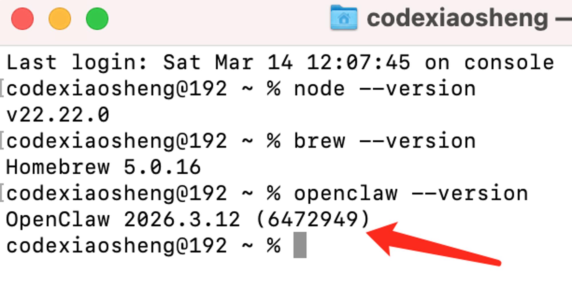 安装完成后,在终端窗口输入这条命令检测是否正常。