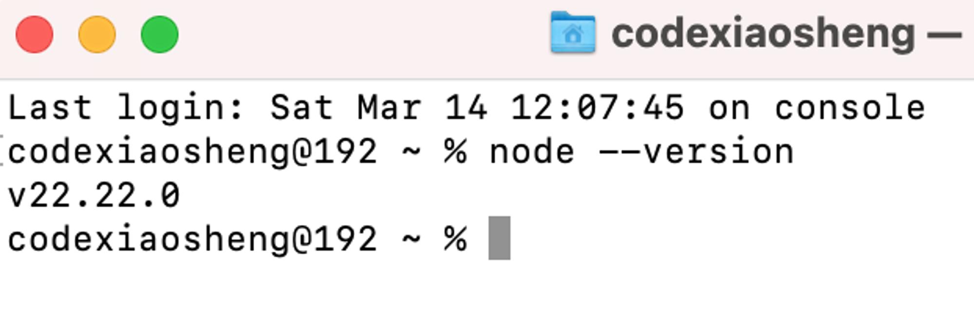 Node.js 的版本一定要大于 22,但也别太新,小生刚开始安装了最新的 24.x,结果提示不可用。