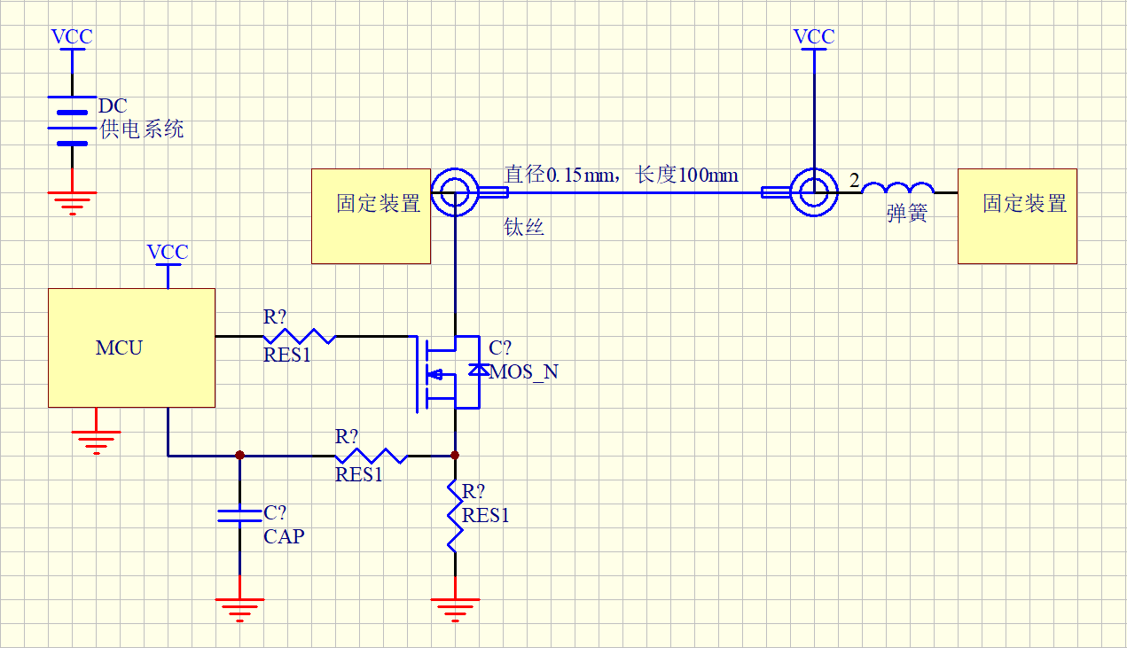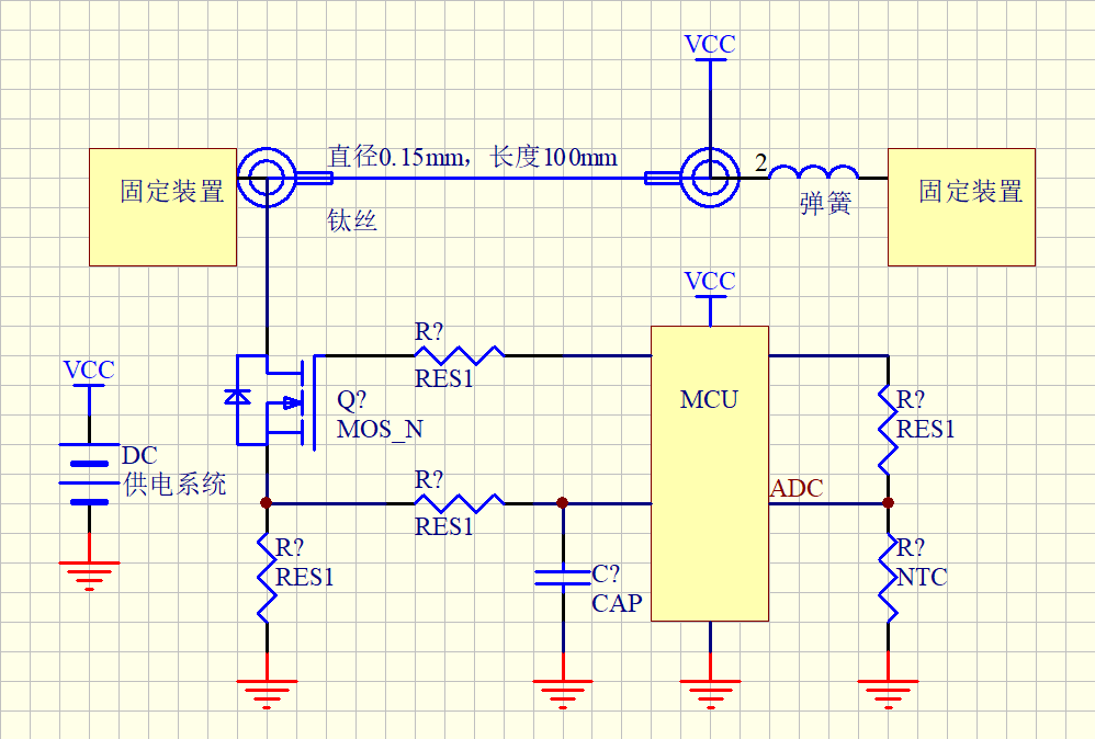 我们在恒功驱动的基础上,将钛丝置于MOS对地的位置,通过钛丝靠近MOS的一端采集电压数据给到MCU的ADC,由于钛丝本身的电阻是随温度的变化而变化,这样就可以实时监控钛丝的驱动过程中的对应温度变化情况。