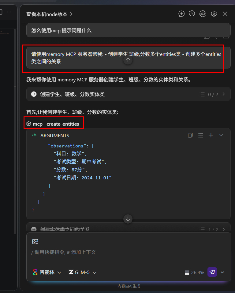 “请使用memory MCP服务器帮我