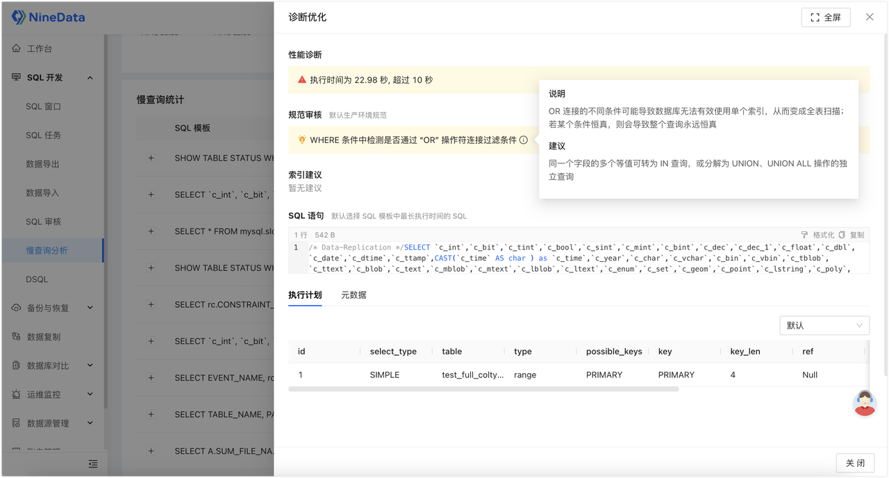 更关键的是,NineData 不只停在慢查询分析页面。