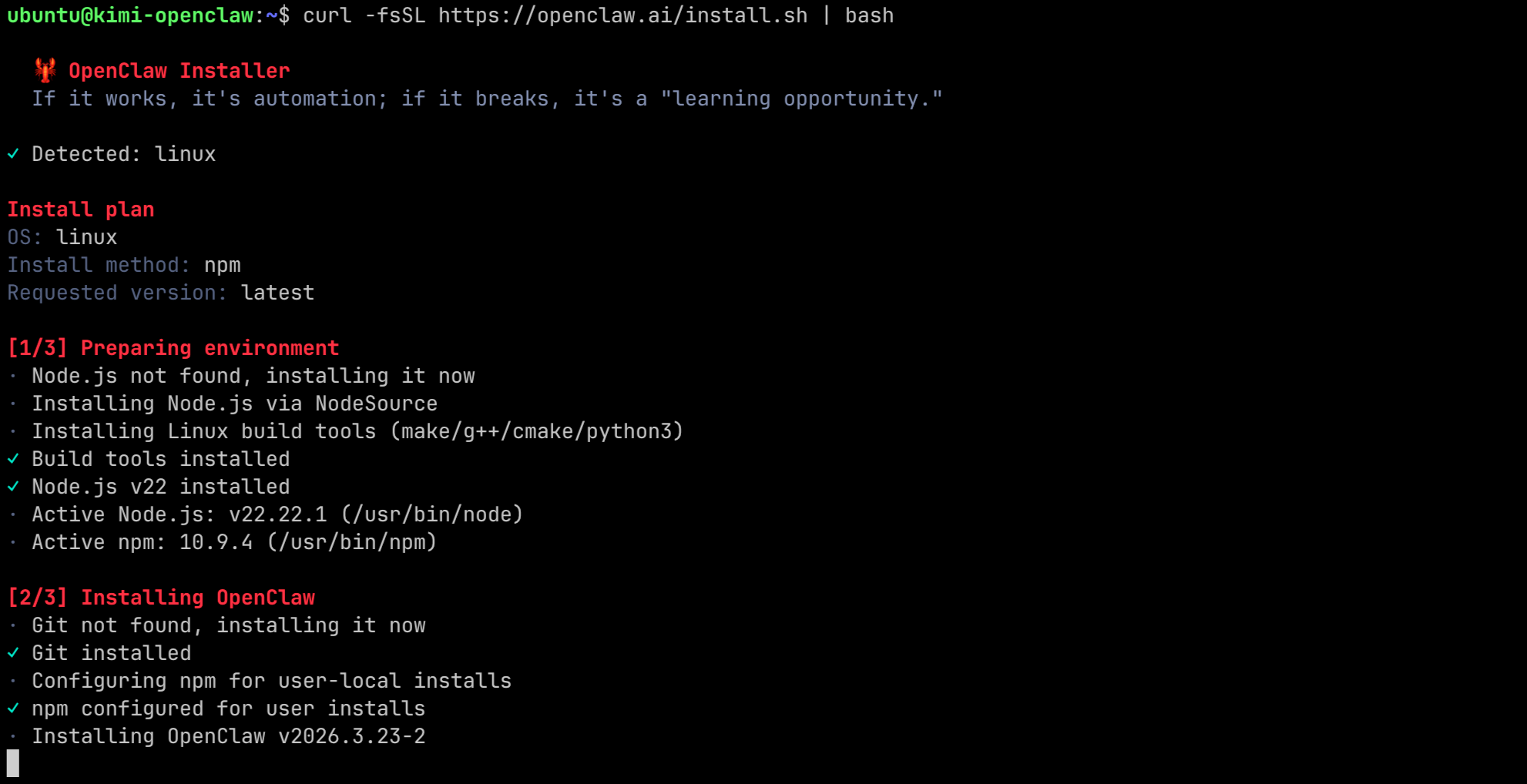 开源个人 AI 助手 OpenClaw(俗称 “小龙虾”),支持多平台部署!官方推荐安装方法全覆盖 Windows、macOS、Linux 三大系统,同时配置登顶OpenClaw使用榜的 Kimi K2.5 模型,全程操作仅需 5 分钟!安装完成直接到手:稳定运行的服务网关、配置完毕的身份验证、可直接使用的聊天会话,轻松解锁能干活的专属 AI 助手!