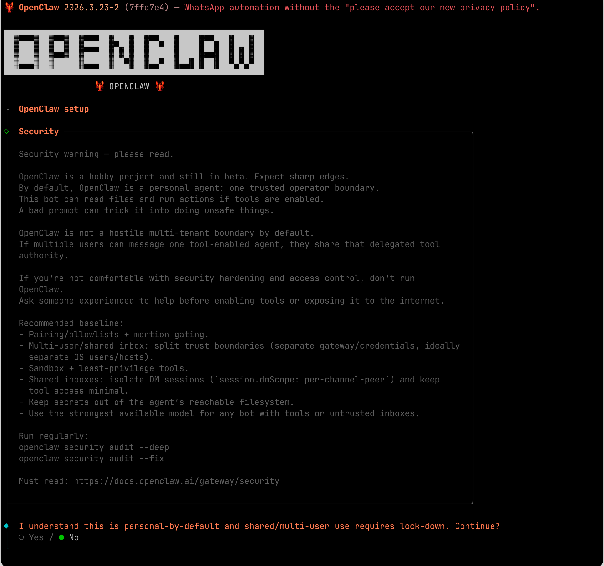 第一步安装成功后显示下面画面,我们选择 Yes并回车,表示知道风险。可以用键盘方向键左右切换Yes或No