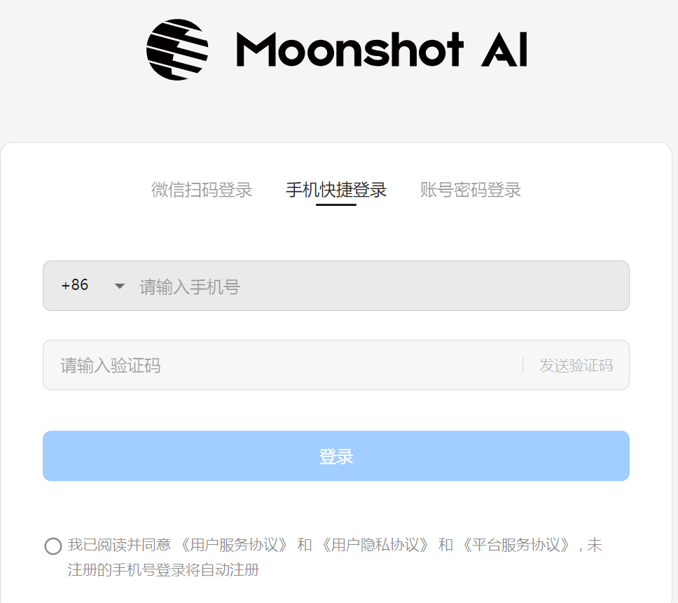登录Kimi网站获取API Key,访问 Moonshot AI 点击登录