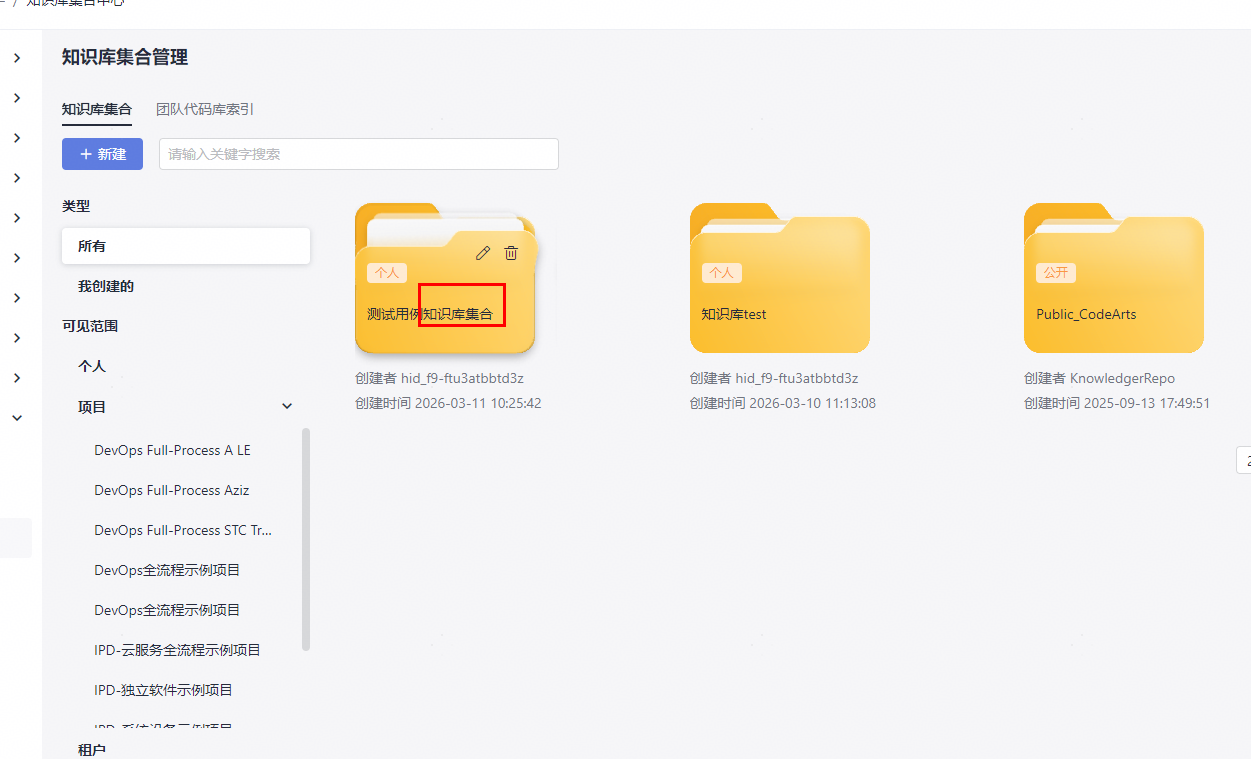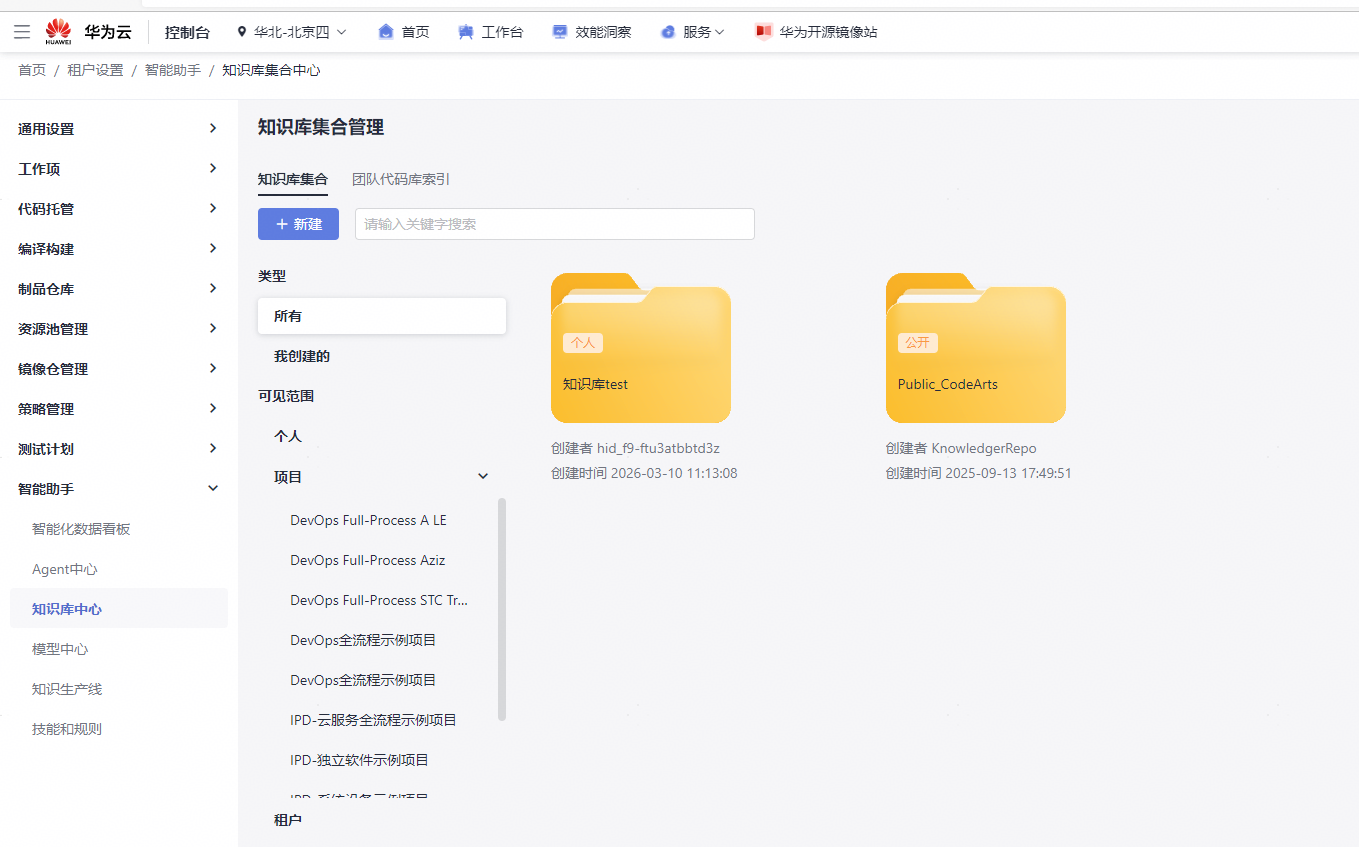登录华为云码道(CodeArts)代码智能体进入知识库