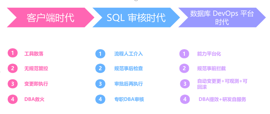 这个阶段的核心变化,不再是“有没有 SQL 审核”,而是“数据库研发、变更、运维、安全能不能放到一套统一机制里”。换句话说,数据库治理开始从一个点状能力,变成一条完整链路。