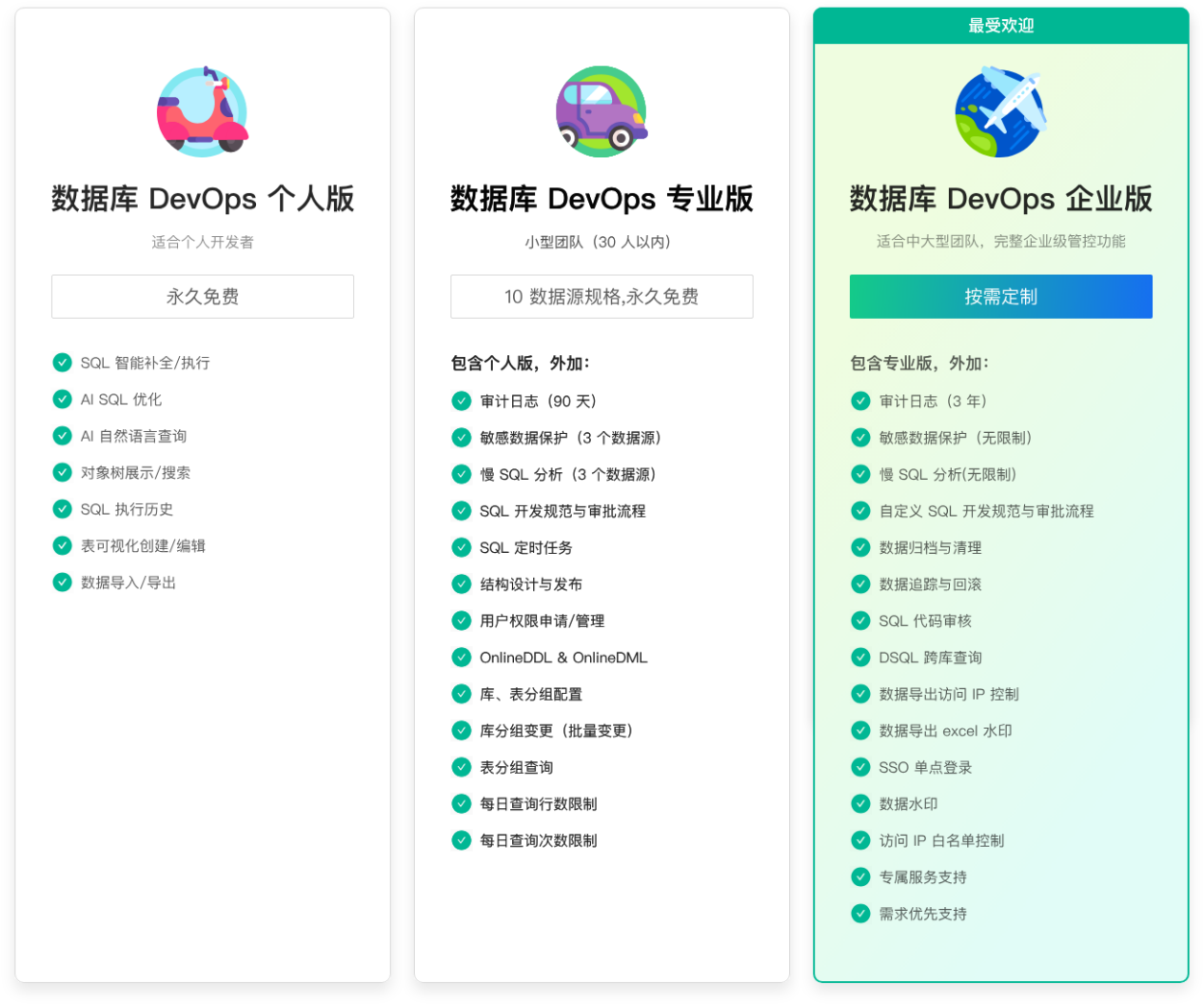 NineData 产品提供三类交付模式,可适配从个人开发到企业核心业务的多类场景需求。