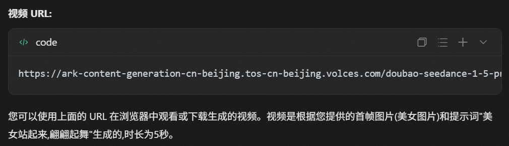 Step6:我们把这个生成视频后的URL复制到浏览器打开,即可下载这个视频,可以欣赏一段美丽的舞蹈了 :)