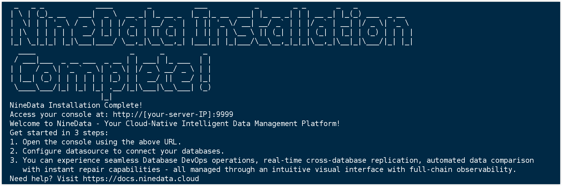 NineData 社区版 4.0 基于 Docker,本地一条安装命令即可完成部署,且可以离线运行。这个点看起来像部署细节,但实际上非常关键,意味着平台不是以“先做复杂集成”为前提,而是允许团队先把基础可用场景跑起来。