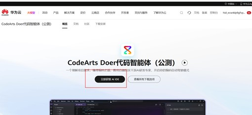 点击此处进入官网下载CodeArts代码智能体界面,点击“立即获取AI IDE”。