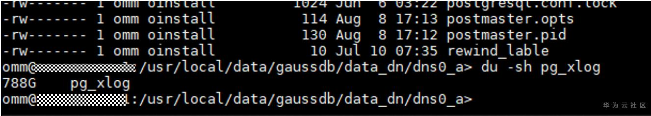 方式一:进入该备DN实例目录pg_xlog路径查看最新XLOG LSN位置,ll -thr|tailf -n 10