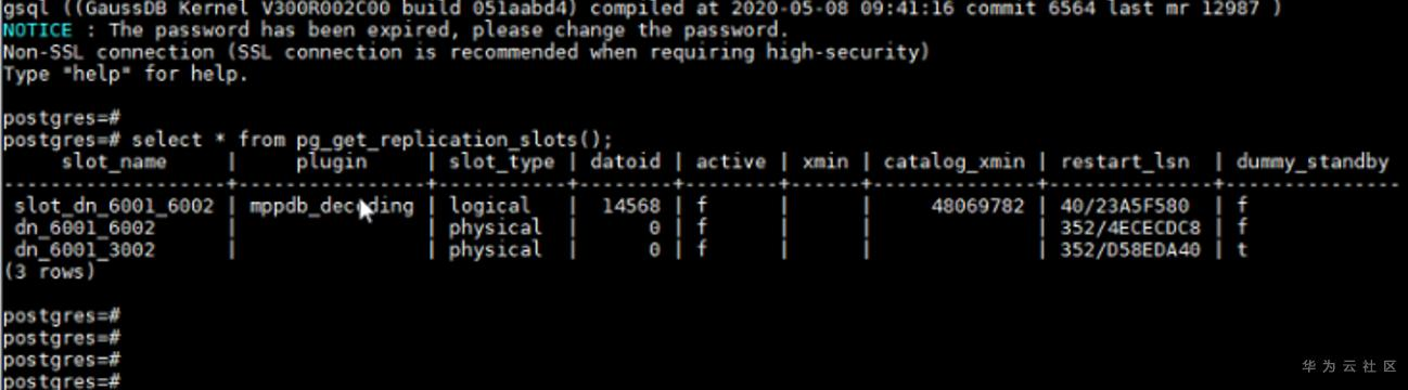 连接该dn查看复制槽使用情况: