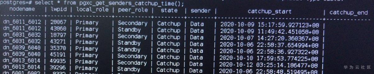 select * from pgxc_get_senders_catchup_time();